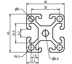 | 8 | Aluminium 6063-T5 | 1.86kg/meter | 5000mm | Ix 9.9cm4 Iy 9.9cm4 |