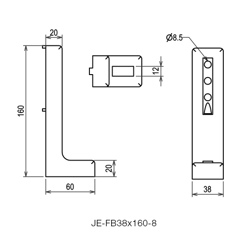 8 | Die-cast zinc, black powder coated | 0.11kg | JE-FB38x160-8 |